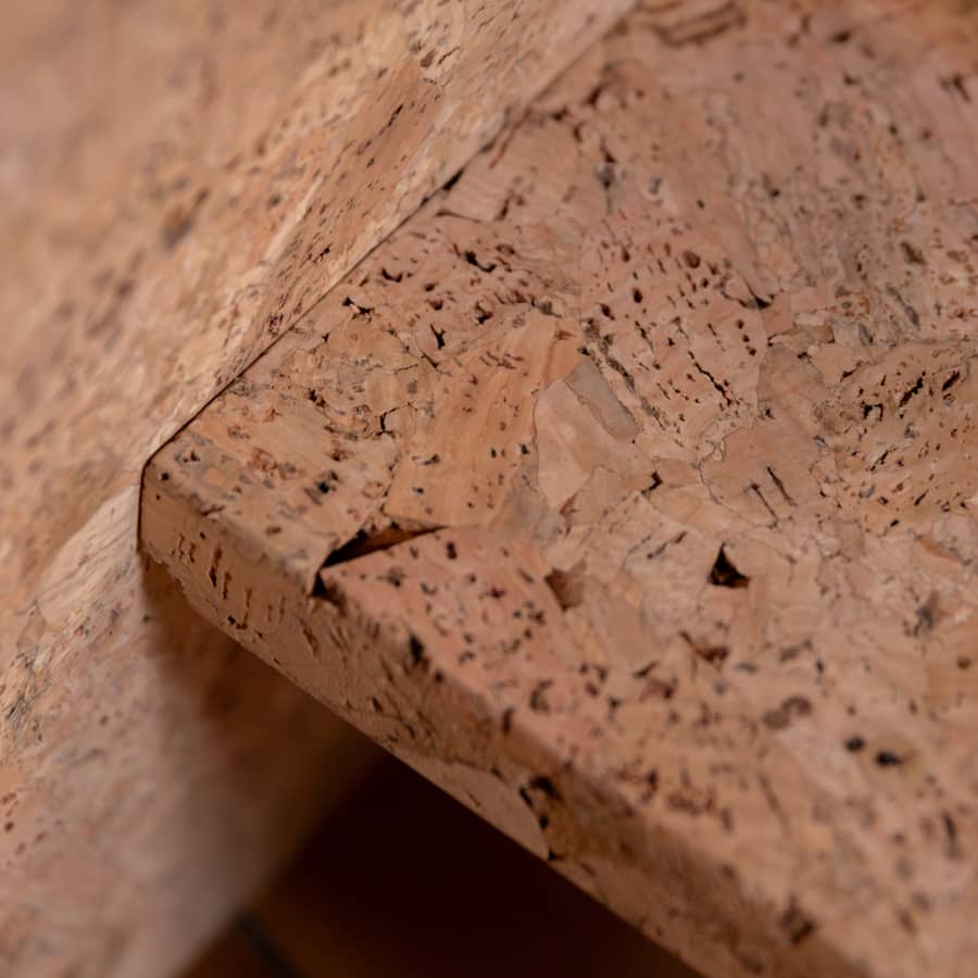 Added to this are other exceptional properties: cork is composed of over 50% air, making it extremely light. Its elasticity and compressibility enable it to adapt to temperature variations without losing volume. Impervious to liquids, it is also hypoallergenic, antistatic and absorbs neither dust nor odors. What’s more, it offers excellent acoustic insulation, resists friction and acts as a flame retardant. Last but not least, its naturally pleasant feel makes it an ideal tabletop material.