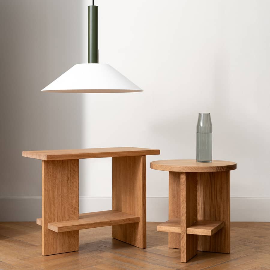 “TheTee Scandinavian Side Table has a singular history. Originally, it was a one-off piece, hand-crafted in solid oak for a friend. One day, Oliver Stratford from Disegno magazine in London asked me if I’d be willing to donate one as a prize for a crossword competition in one of their issues. This prompted me to think about how I could optimize the manufacture of the table and make it flat-packed, so that it could be easily shipped to the winner. It was also an opportunity to explore small-scale production and to consider self-produced distribution.”